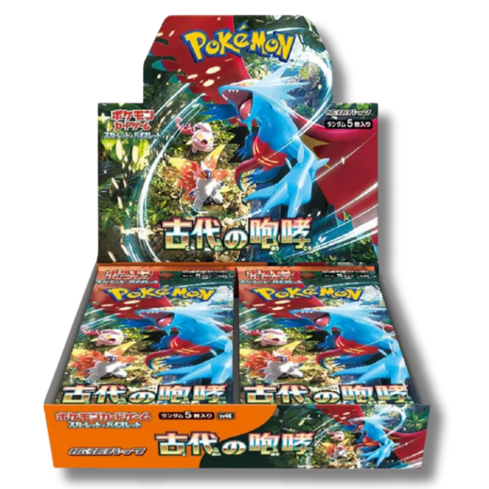 Ancient Roar è il titolo assegnato al set giapponese sv4K, lanciato durante l'epoca Scarlatto e Violetto del Gioco di Carte Collezionabili Pokémon. Questa affascinante collezione ha visto la luce in Giappone il 27 ottobre 2023 e presenta un totale di 66 carte regolari, accompagnate da numerose edizioni speciali.