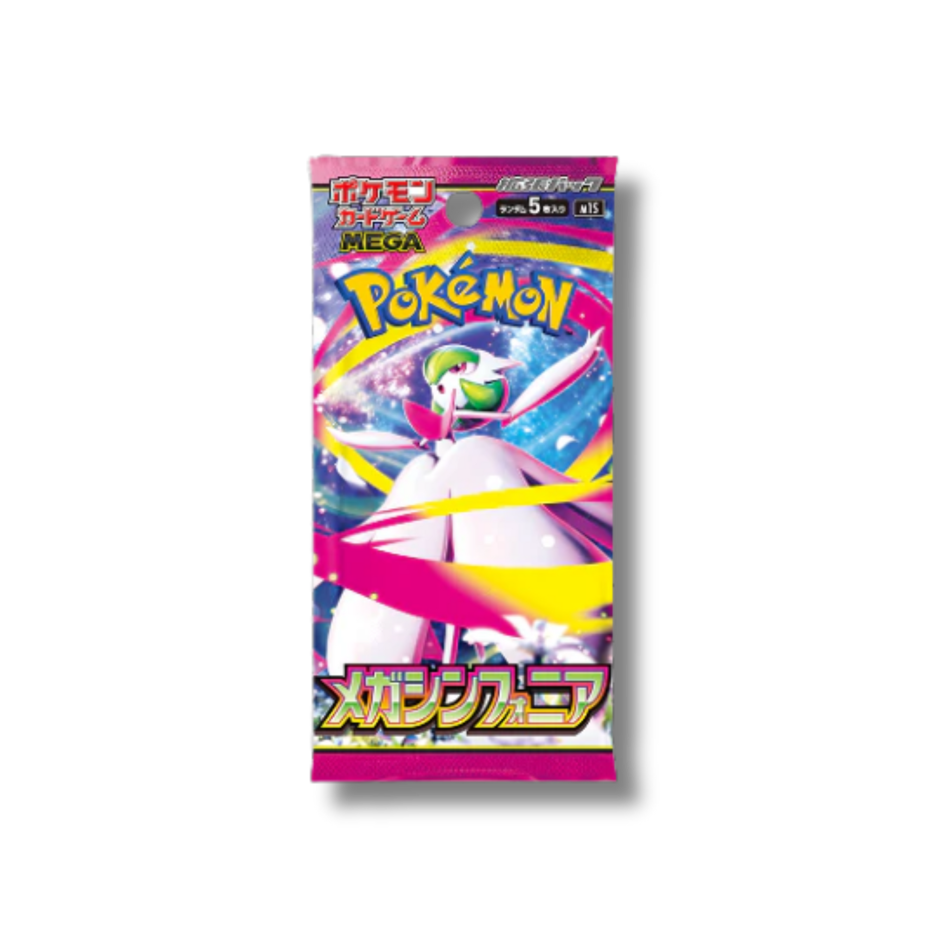 Viaggia nel cuore dell’azione con un singolo pacchetto dell’espansione Mega Symphonia [M1S], rilasciata il 1° agosto 2025, che celebra il ritorno delle Mega Evoluzioni. Questo pack giapponese racchiude la potenza artistica del set in 5 carte premium, tra cui: