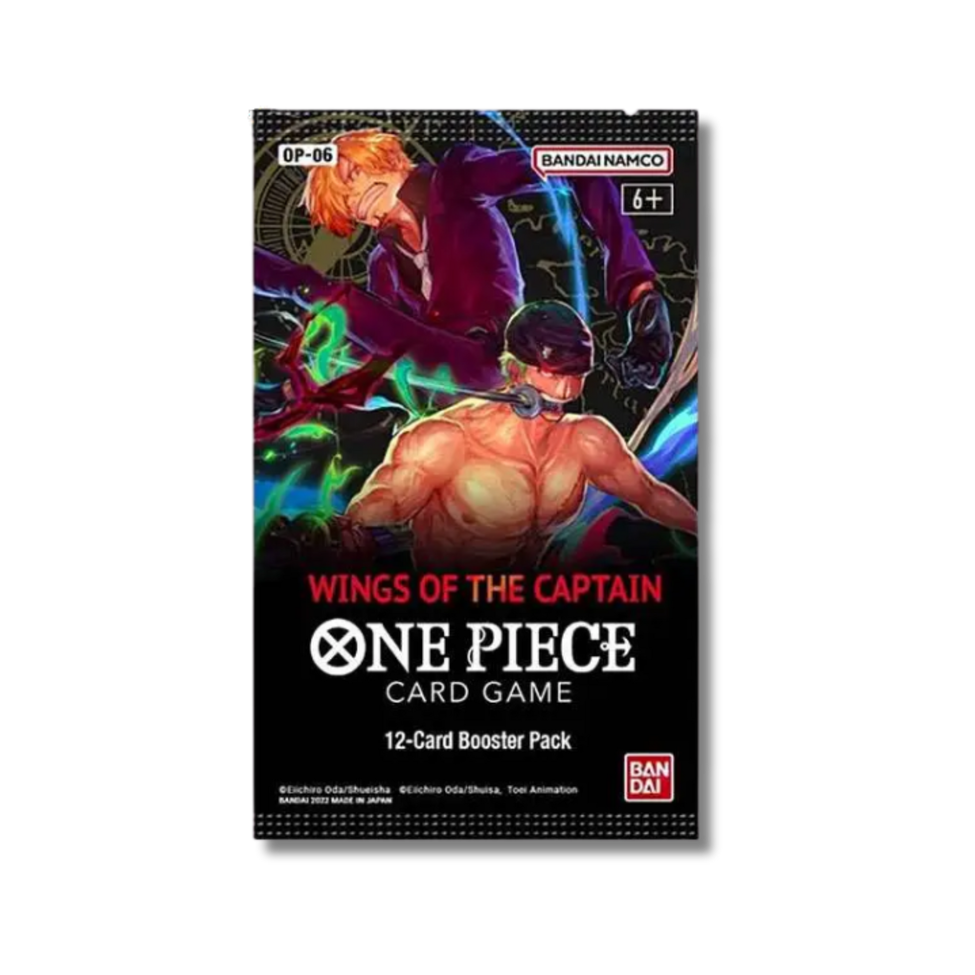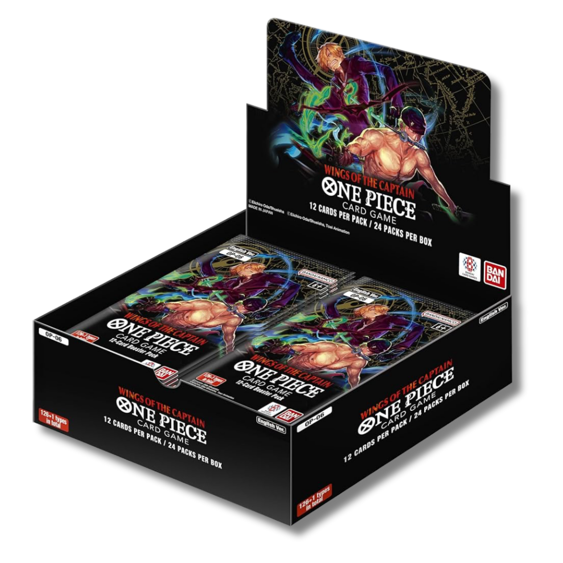 Il sesto capitolo del One Piece Card Game in lingua inglese, dedicato agli “alleati più potenti” e ai personaggi che hanno rappresentato le ali dei capitani. OP06 – Wings of the Captain introduce nuove strategie, leader iconici e carte alternate art molto apprezzate dai collezionisti.