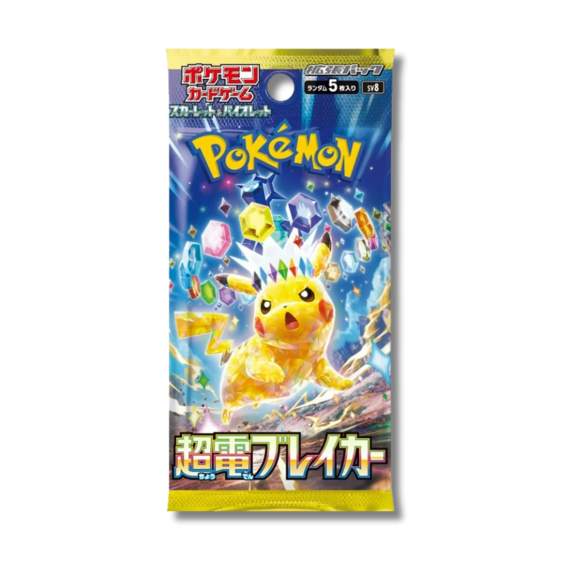 Un must per i veri collezionisti! Questo esclusivo pacchetto giapponese della leggendaria espansione Super Electric Breaker contiene artwork unici, carte vintage e il fascino originale delle edizioni giapponesi. Ogni bustina sigillata può contenere Pokémon art rare, carte olografiche rare e la magia degli anni d’oro del TCG.